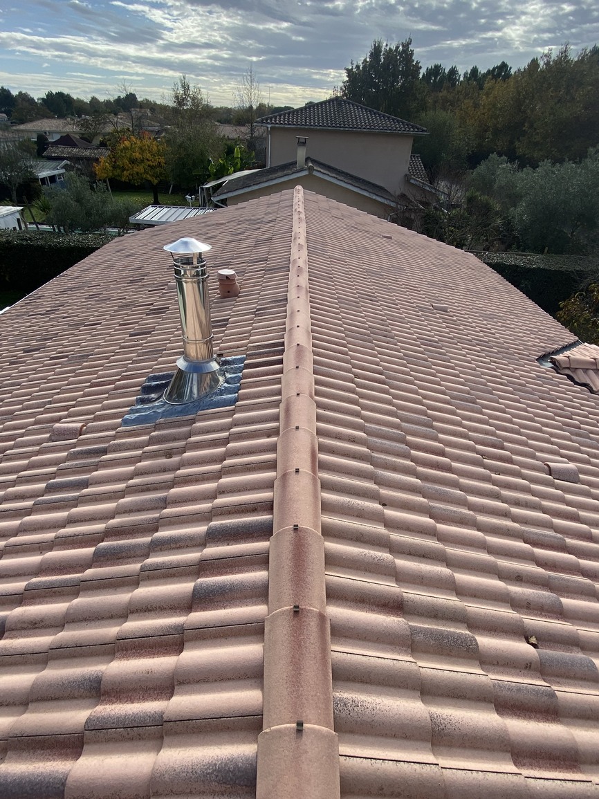 Création d’un abri voiture: charpente, gouttière pvc , plaque imitation tuile , habillage PVC imitation bois